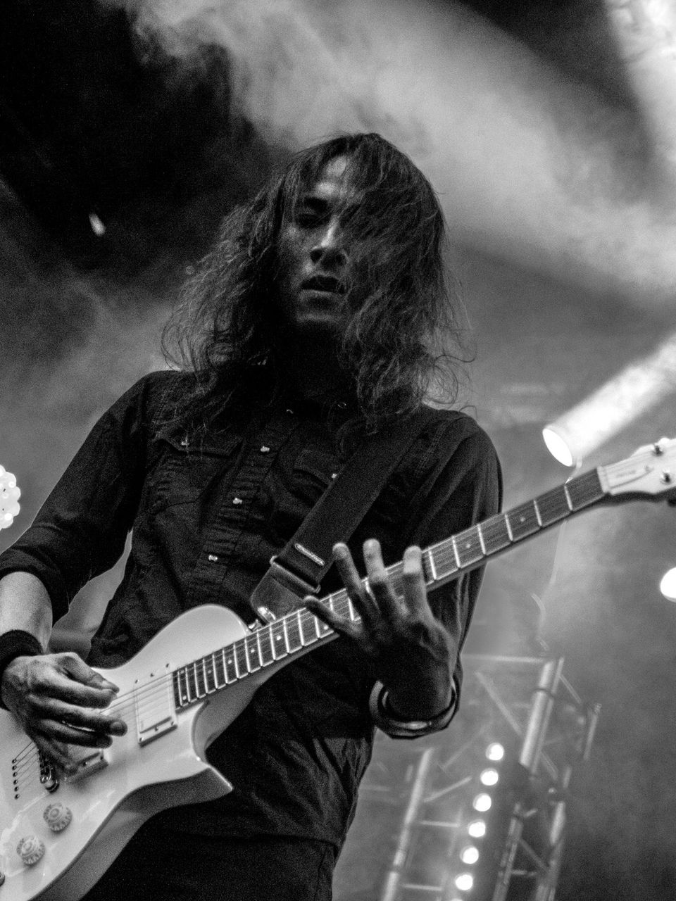 When ESP and I built this guitar, I just wanted something that felt right — aggressive, clean, and ready to go. I’ve always loved the Eclipse shape, and the black finish with the white EMGs and pearloid tuners gives it that sharp contrast. Simple. Bold. Heavy.