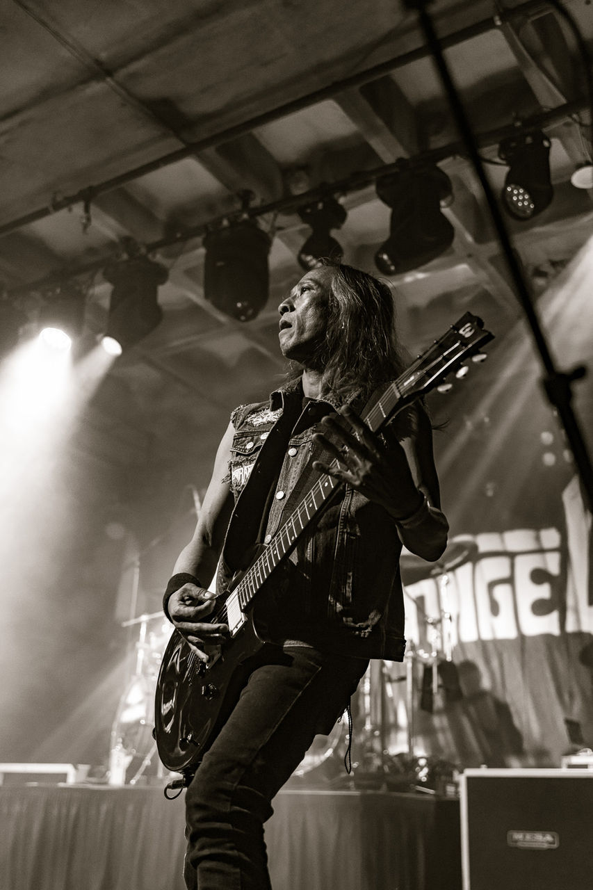 Ted Aguilar is the powerhouse rhythm guitarist of Death Angel, driving the band’s signature blend of precision, speed, and melody since 2001. Known for his machine-tight right hand, Ted has been a defining force in the band’s modern era—contributing to critically acclaimed albums including The Art of Dying, Relentless Retribution, and the Grammy-nominated Humanicide.